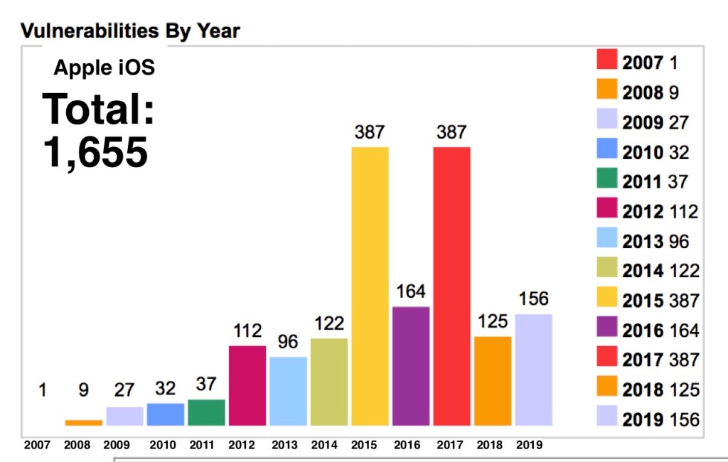 According to the CVE Details.com, there are 2,500 Android vulnerabilities and more than 1,650 iOS vulnerabilities. Android’s issues recorded highest in 2017, with 843 vulnerabilities. iOS also peaked in 2017 with 387. Since then, Google’s steps to remedy issues have given positive results: only 414 vulnerabilities were found so far this year as of Oct. 31. Meanwhile, iOS vulnerabilities decreased to 229 for the same period.