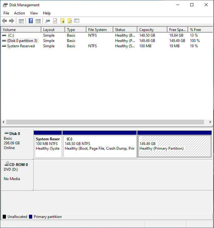 Some computers contain many more partitions than shown in the example above. In case you see multiple partitions, and you haven’t manually created them, search online for which of them can be shrunk. If your computer came with Windows pre-installed, then another partition which you may see alongside ‘C’ is ‘Recovery’. Do not shrink partitions labelled “System..” or “EFI..”
