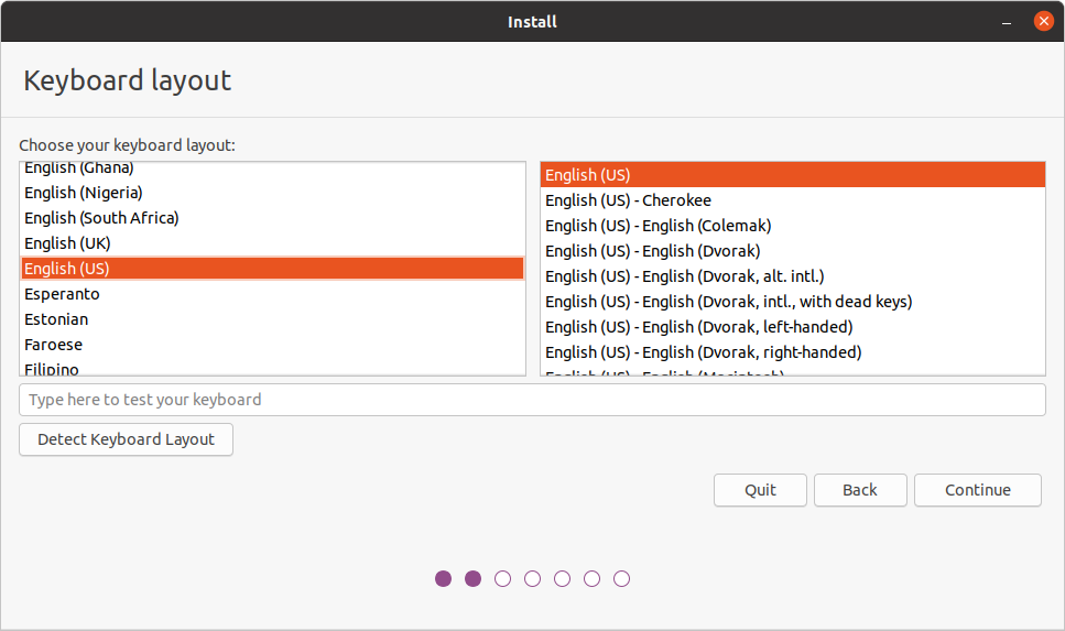 - Follow the on-screen instructions to set-up your language and keymap. In other linux distributions, the steps to follow are almost the same, but their installers may be different and thus proceed through a different series of steps.